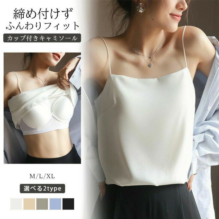 【半額クーポン対象】カップ付きキャミソール ノンワイヤー ブラ サテン ナローストラップ トップス レディース おすすめ おしゃれ 大きいサイズ メール便 2024春夏新作【lestpss24-480】【予約販売:15-20日】【送料無料】メ込2