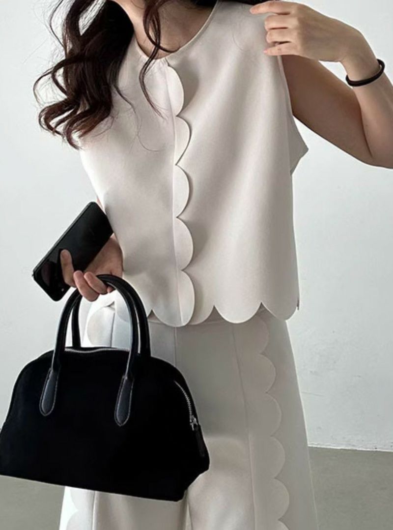 【送料無料】2025 SS 新作 スカラップ トップス ストレートパンツ セットアップ