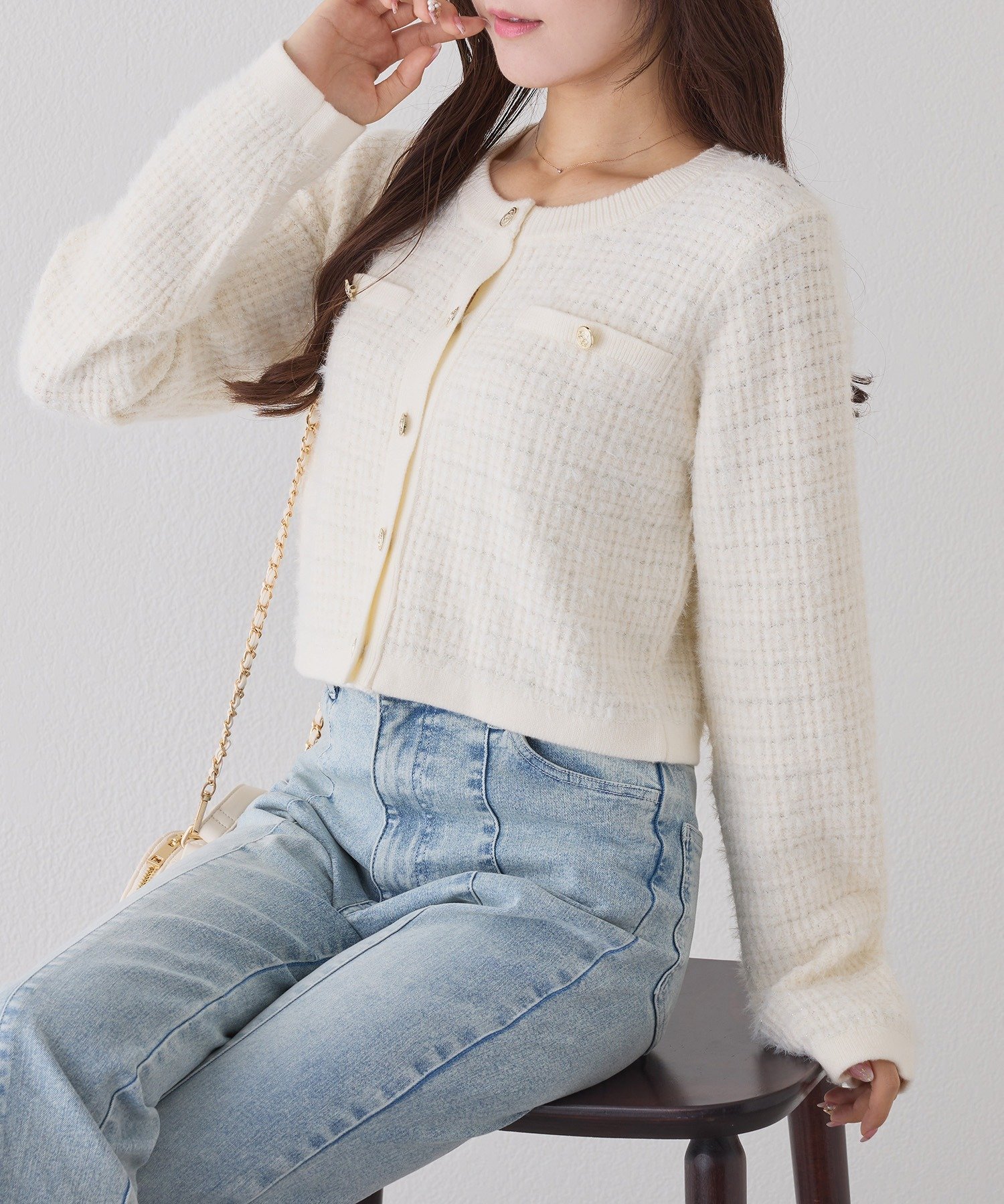 one after another NICE CLAUP(ワンアフターアナザー ナイスクラップ)金ボタンラメツイードカーデ~NICECLAUP 2025 Winter Collection~多色の糸を組み合わせて編むことで、立体感と奥行きを出したツイードニットカーディガン。ショート丈なのでロングボトムスとも相性抜群◎デザインはノーカラーデザインで金ボタンがアクセントになっており羽織るだけで今っぽく決まります。きちんと感もあり、セレモニーやお仕事シーンにも使えます。大人っぽさを演出しながらもナイスクラップらしい色合いプラス。■オススメコーディネートフェミニンな雰囲気がお好きな方はミニスカートとの合わせがオススメ。カジュアルさんは、デニム合わせでカジュアルダウンも◎キレイめのパンツやブラウスと合わせてお仕事やセレモニーシーンでも活躍出来ます。-------------裏地:なし伸縮性:あり生地の厚さ:普通生地の重さ:普通-------------【ニットアイテムのお取り扱いのご注意】●この製品は素材の特性上、着用やクリーニングにより、毛羽立ちや毛玉が発生することがあります。1、1日着用した際は、2.3日休ませるなどしてご使用ください。2、毛玉が出来てしまった場合は、毛玉取り器、又はハサミで丁寧にカットして取り除いてください。●この製品はデザイン性、風合いを重視し編みたてたニット製品です。着用により若干の伸びが生じますのでご了承お願いします。又、保存時のハンガーのご使用は避け下さい。※サンプルでの撮影のため、実際のものと仕様や色が異なる場合があります。※室内、室外での撮影のため実際より明るく映っていたり、暗く映っていたりする場合がございます。※品質表示を必ずご確認下さい。▼お気に入り登録のおすすめ【気になるアイテムを登録】ハートをクリックしてお気に入りに登録すると完売カラーの再入荷やラスト1点の通知、セールの通知を受けとることができます。【ブランドを登録】新作入荷や再入荷、セール通知など、いち早くブランドの情報を受けとることができます。是非ご利用下さい♪ 2025AW0152050380 型番:0152050380-1N-1p QM3291【採寸】サイズ着丈袖丈肩幅胸囲総丈FREE43503390-商品のサイズについて【商品詳細】中国素材:レーヨン42%・ナイロン32%・ポリエステル26%サイズ:FREE※画面上と実物では多少色具合が異なって見える場合もございます。ご了承ください。商品のカラーについてone after another NICE CLAUP(ワンアフターアナザー ナイスクラップ)金ボタンラメツイードカーデ~NICECLAUP 2025 Winter Collection~多色の糸を組み合わせて編むことで、立体感と奥行きを出したツイードニットカーディガン。ショート丈なのでロングボトムスとも相性抜群◎デザインはノーカラーデザインで金ボタンがアクセントになっており羽織るだけで今っぽく決まります。きちんと感もあり、セレモニーやお仕事シーンにも使えます。大人っぽさを演出しながらもナイスクラップらしい色合いプラス。■オススメコーディネートフェミニンな雰囲気がお好きな方はミニスカートとの合わせがオススメ。カジュアルさんは、デニム合わせでカジュアルダウンも◎キレイめのパンツやブラウスと合わせてお仕事やセレモニーシーンでも活躍出来ます。-------------裏地:なし伸縮性:あり生地の厚さ:普通生地の重さ:普通-------------【ニットアイテムのお取り扱いのご注意】●この製品は素材の特性上、着用やクリーニングにより、毛羽立ちや毛玉が発生することがあります。1、1日着用した際は、2.3日休ませるなどしてご使用ください。2、毛玉が出来てしまった場合は、毛玉取り器、又はハサミで丁寧にカットして取り除いてください。●この製品はデザイン性、風合いを重視し編みたてたニット製品です。着用により若干の伸びが生じますのでご了承お願いします。又、保存時のハンガーのご使用は避け下さい。※サンプルでの撮影のため、実際のものと仕様や色が異なる場合があります。※室内、室外での撮影のため実際より明るく映っていたり、暗く映っていたりする場合がございます。※品質表示を必ずご確認下さい。▼お気に入り登録のおすすめ【気になるアイテムを登録】ハートをクリックしてお気に入りに登録すると完売カラーの再入荷やラスト1点の通知、セールの通知を受けとることができます。【ブランドを登録】新作入荷や再入荷、セール通知など、いち早くブランドの情報を受けとることができます。是非ご利用下さい♪ 2025AW0152050380 型番:0152050380-1N-1p QM3291【採寸】サイズ着丈袖丈肩幅胸囲総丈FREE43503390-商品のサイズについて【商品詳細】中国素材:レーヨン42%・ナイロン32%・ポリエステル26%サイズ:FREE※画面上と実物では多少色具合が異なって見える場合もございます。ご了承ください。商品のカラーについて