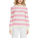 ランズエンド レディース ニット&セーター アウター Women's Aran Cable Crew Neck Sweater Light rose pink classic stripe
