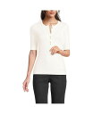 ランズエンド レディース トップス シャツ Lands' End Women's Elbow Sleeve Polished Rib Henley Top Ivory アイボリー