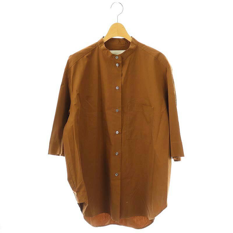 【中古】スタジオニコルソン STUDIO NICHOLSON LUCAS POWDER COTTON 半袖シャツ チュニック丈 バンドカラー 1 茶 /MI ■OS レディース 【ベクトル 古着】 250724