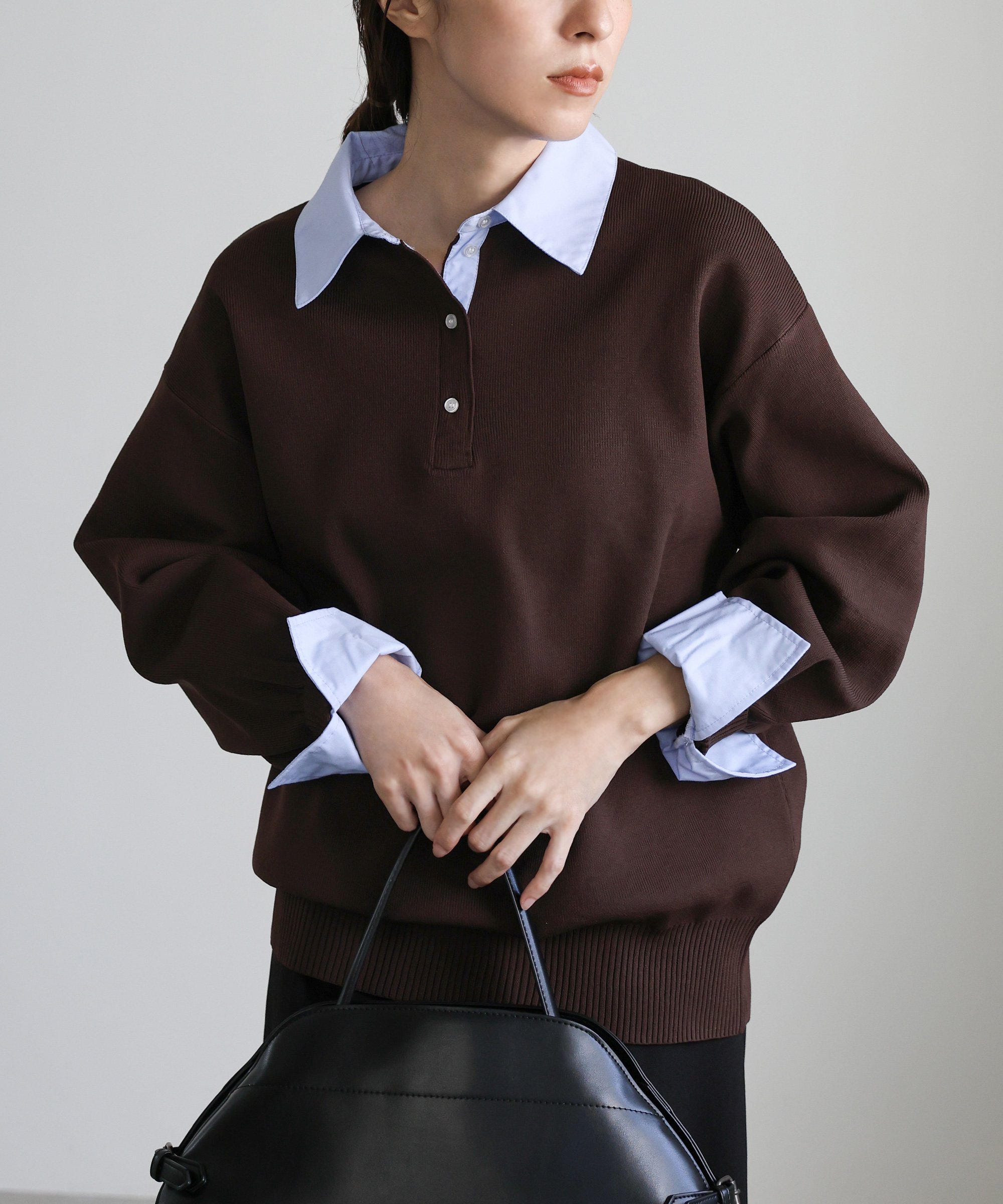 SELECT MOCA シャツカラードッキングニット セレクトモカ トップス ニット ブラウン【送料無料】