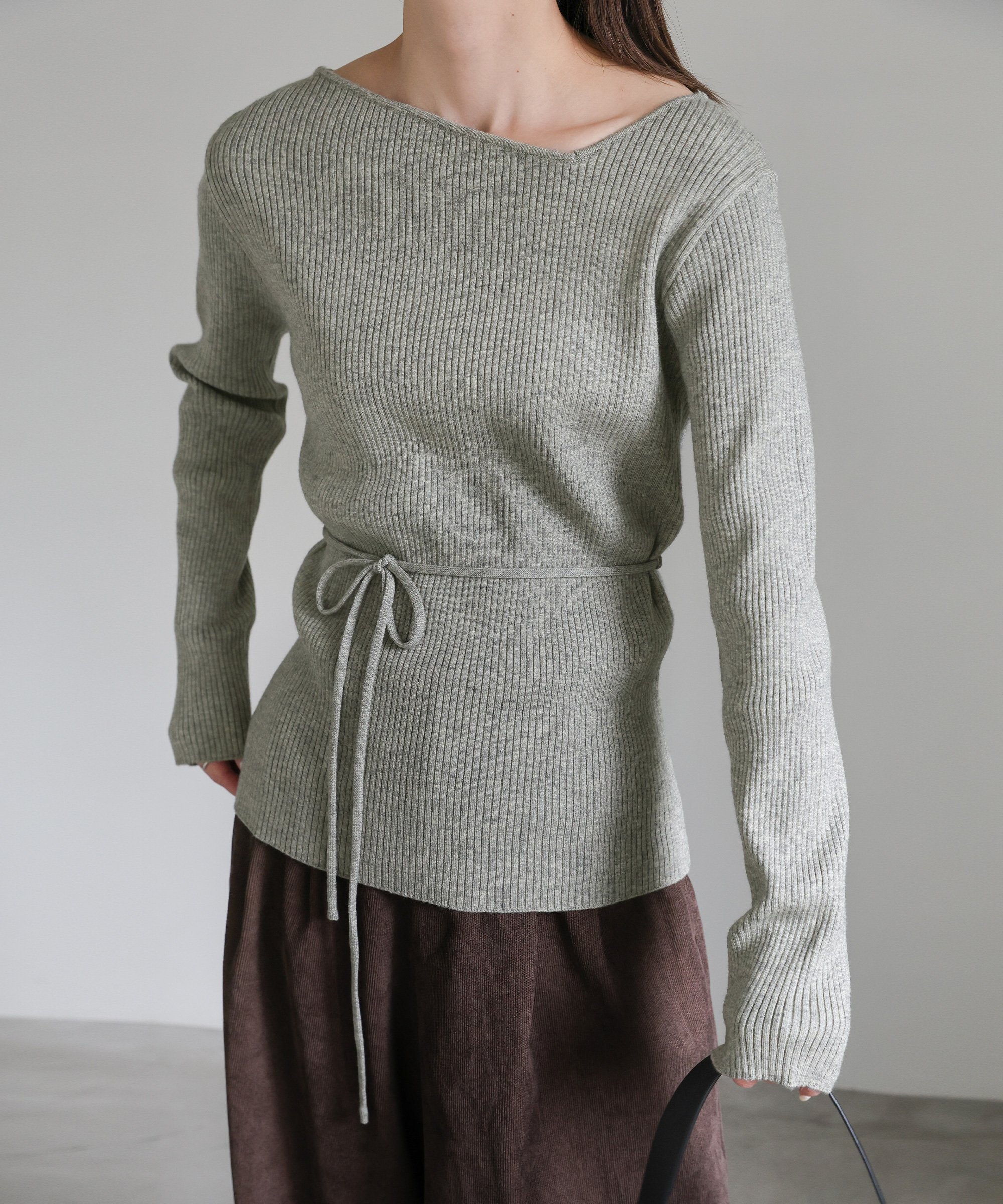 SELECT MOCA アシメネックウエストリボンニット セレクトモカ トップス ニット【送料無料】