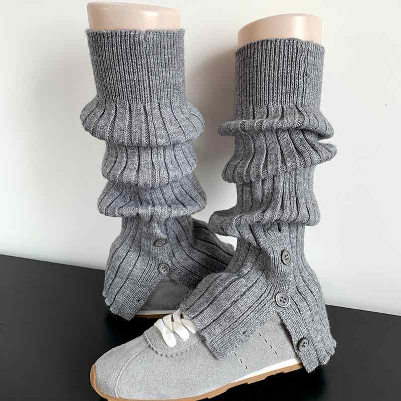靴下 レディース 高筒 ニット ソックス 秋冬 ウール 混紡 無地 レッグウォーマー 黒 グレー 韓国 森ガール カジュアル(x2)