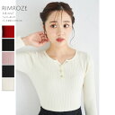 ヘンリーネックハートボタンリブニット【rimroze リモーズ】tocco closet(トッコクローゼット) レッド ネイビー グレイッシュピンク ブラック アイボリー 商品番号:186-190325