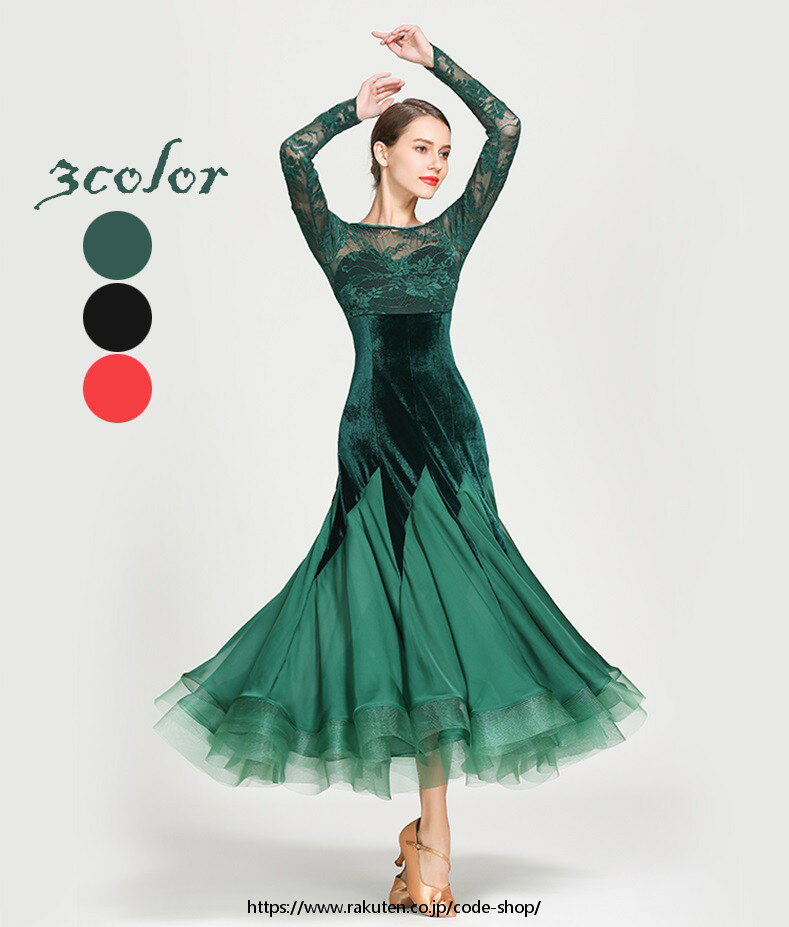 社交ダンス 衣装 ワンピース おしゃれ 大きい裾 黒 タンゴ モダンダンス 舞台 演出 イベント衣装 ステージ衣装 ラテンダンス ダンスウエア 競技 練習着 ダンスワンピース 女性用 ワルツ チャチャ インターナショナルダンス ロング丈 ブラック 緑 レッド 赤 上品 ドレス