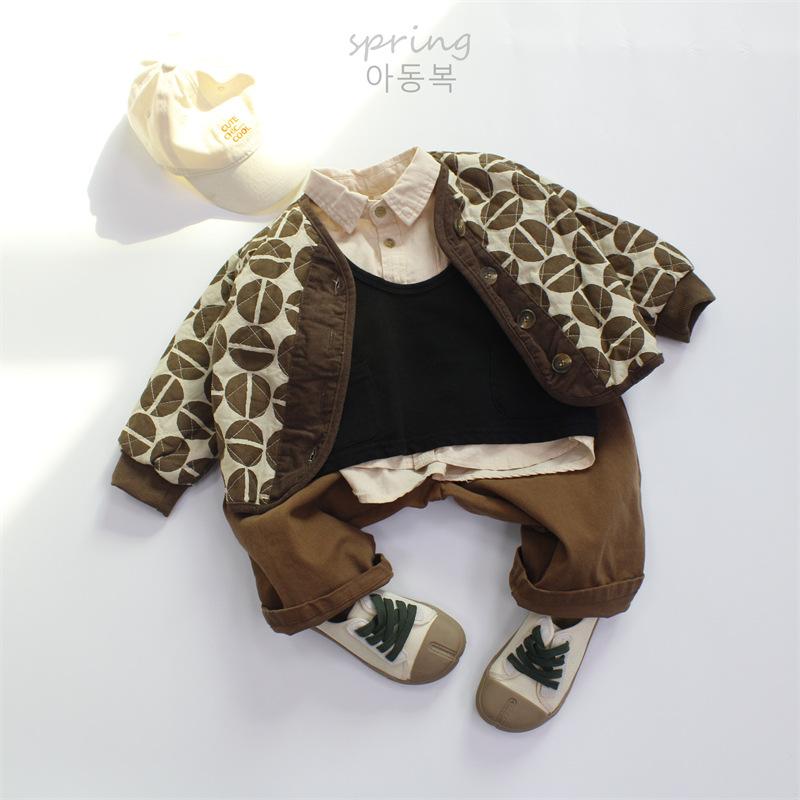 子供用 ジャケット 男女兼用 Vネック コットン アウター 秋冬 韓国風 レトロ ドット柄 かわいい 80cm 90cm 100cm 110cm 120cm 130cm 140cm