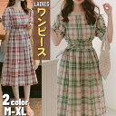 中学生 高校生 チェック ワンピース パフスリーブ スクエアネック ハイウエスト カジュアル 通勤 通学 旅行 夏 10代 20代 韓国 おしゃれ レディース 14483