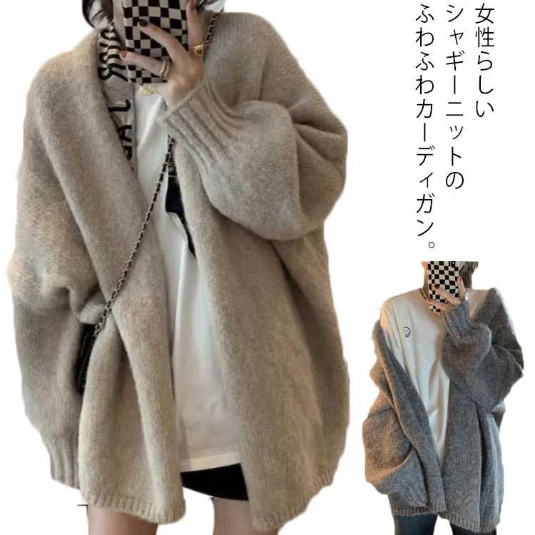 カーディガン モヘアタッチ Vネック 長袖 ニットカーディガン レディース ニットトップス セーター ジャケット アウター 羽織り トップス オーバーサイズ 体型カバー ゆったり ミドル丈 起毛 ポケット オフィス カジュアル あったか 暖か 防寒 秋冬 春 秋 冬