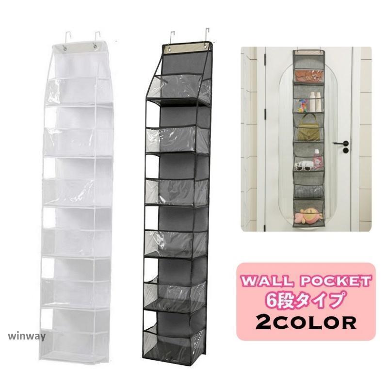 ウォールポケット 壁面収納 壁掛け収納 吊り下げ ハンギング 収納 6段 クリア みせる収納 小物整理 バッグ 鞄 壁面ラック 整理整頓 片付け 省ス