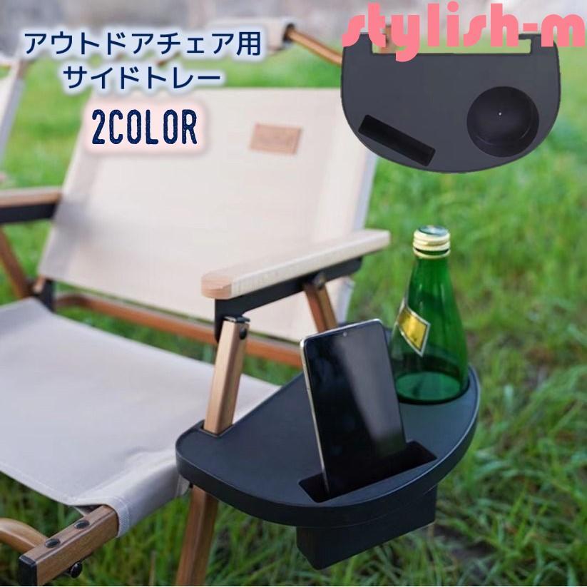 サイドトレイ トレー ドリンクホルダー スマホホルダー キャンプチェア用 アウトドア椅子用 取り付け簡単 便利 後付けトレイ ボトルホルダー カップト