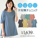 \早割クーポン配布中!/綿100%抗菌防臭汗ジミ対策チュニック(M〜LL) レディースファッション ミセス 大人 トップス 体型カバー 半袖 汗染み防止 汗対策 大人可愛い ゆったり 大きいサイズ 40代 50代 Belluna ベルーナ 高評価