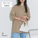 綿100% サイドスリットロンT ☆ 抗ウイルス Tシャツ ロンT 長袖カットソー 抗菌 防臭 抗ウィルス素材 綿 綿100 コットン シンプル 無地 長袖 白 ベージュ レディース 20代 30代 40代 カットソー ピエロ 【Pierrot】