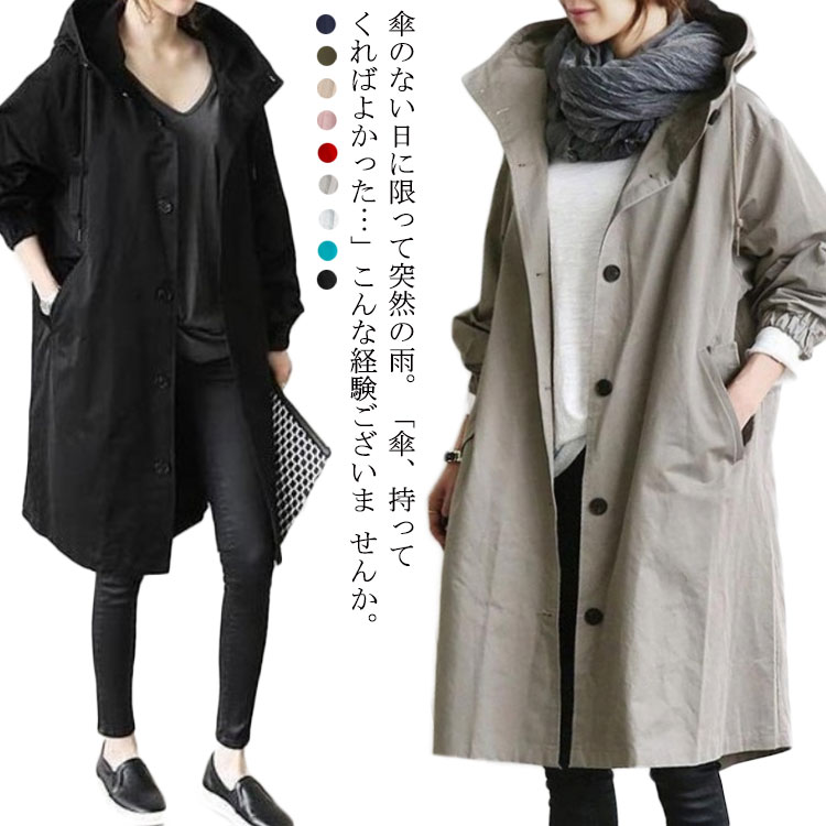 ステンカラーコート フード付 スプリングコート レインコート レディース おしゃれ レディース はっすい加工 ステンカラーレインコート はっ水 折りたたみ 雨の日 プレゼント 女性 ナイロン 台風 大きサイズ