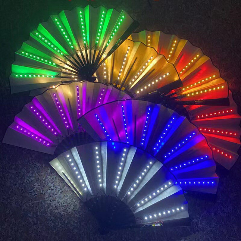 LED光る扇子 光る 輝く 扇子 LED 折りたたみ式 コンサートライト 応援ライト パーティー お祭り 花火大会 イベント 特殊効果 和装小物 演出道具 1本(12V-23Aアルカリ乾電池は別途購入する必要があります)
