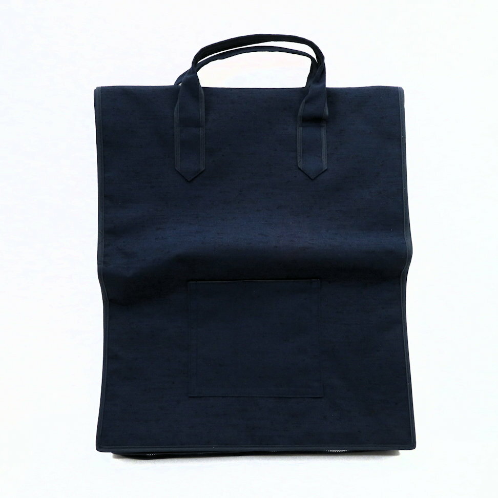 着物バッグ 紺・紬風《和装バッグ・きもの収納バッグ・折りたたみ式》衣裳きものパック・四季
