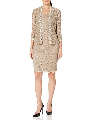 【中古】【未使用・未開封品】Alex Evenings レディース プチサイズ 総レース柄ロングワンピース&ジャケット スパンコール付き。 カラー: ブラウン