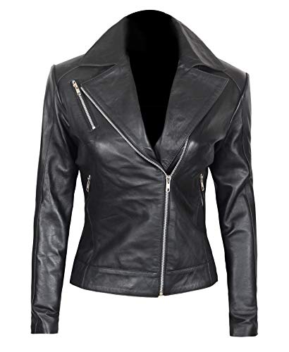 【中古】【未使用・未開封品】ブラックレザージャケット レディース - 本物のラムスキンキルトレザージャケット レディース US サイズ: 3X-Large カラー: ブラック