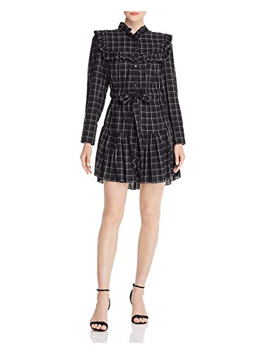 【中古】【未使用・未開封品】La Vie Rebecca Taylor 長袖格子縞フリルドレス US サイズ: Medium カラー: ブラック