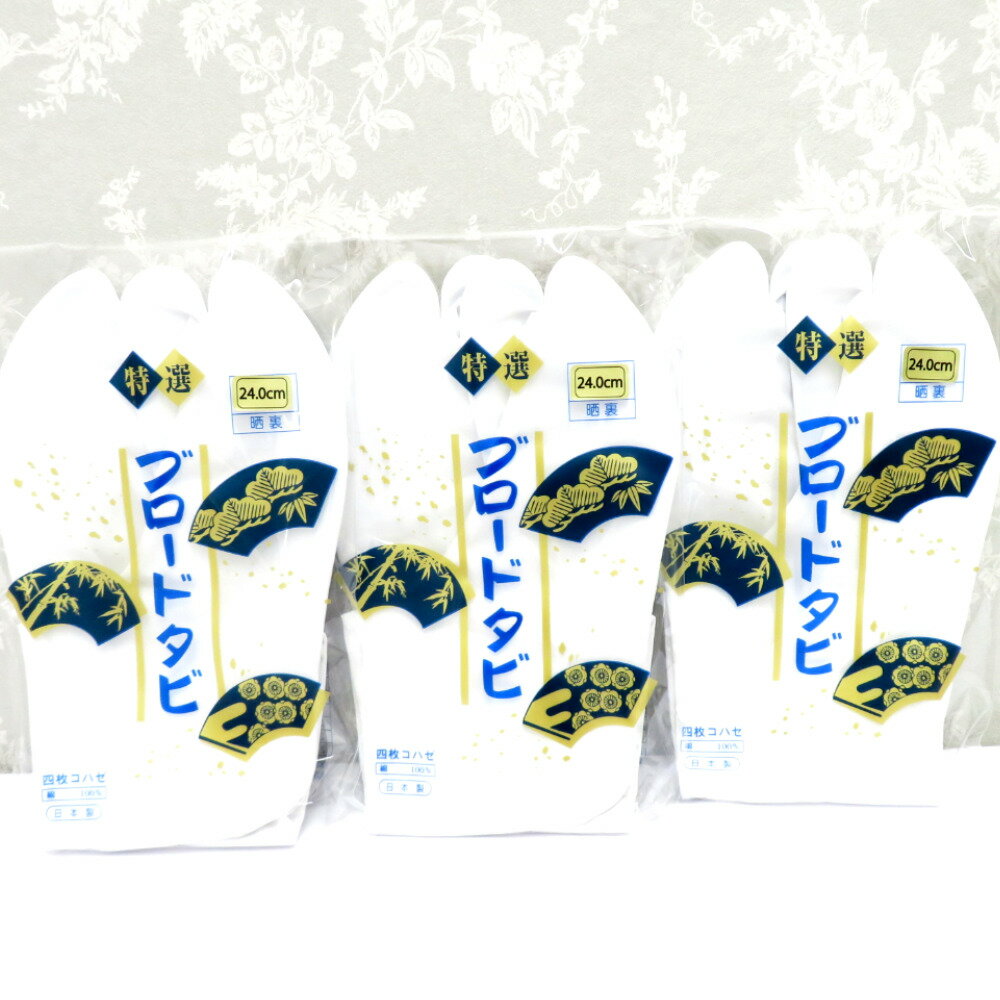 お得3点セット ブロード足袋 綿100% 日本製 四枚こはぜ 24.0cm 3足セット 白 新品 未開封品 新品