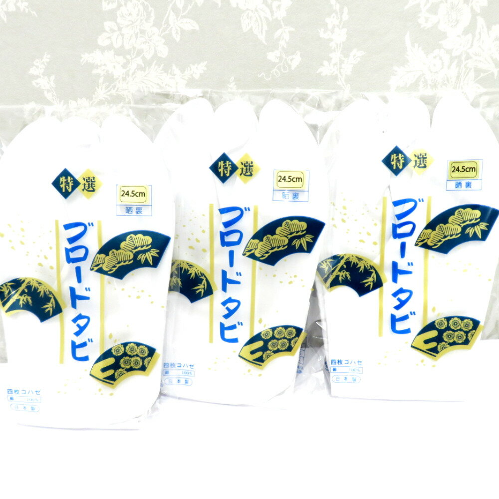 お得3点セット ブロード足袋 綿100% 日本製 四枚こはぜ 24.5cm 3足セット 白 新品 未開封品 新品