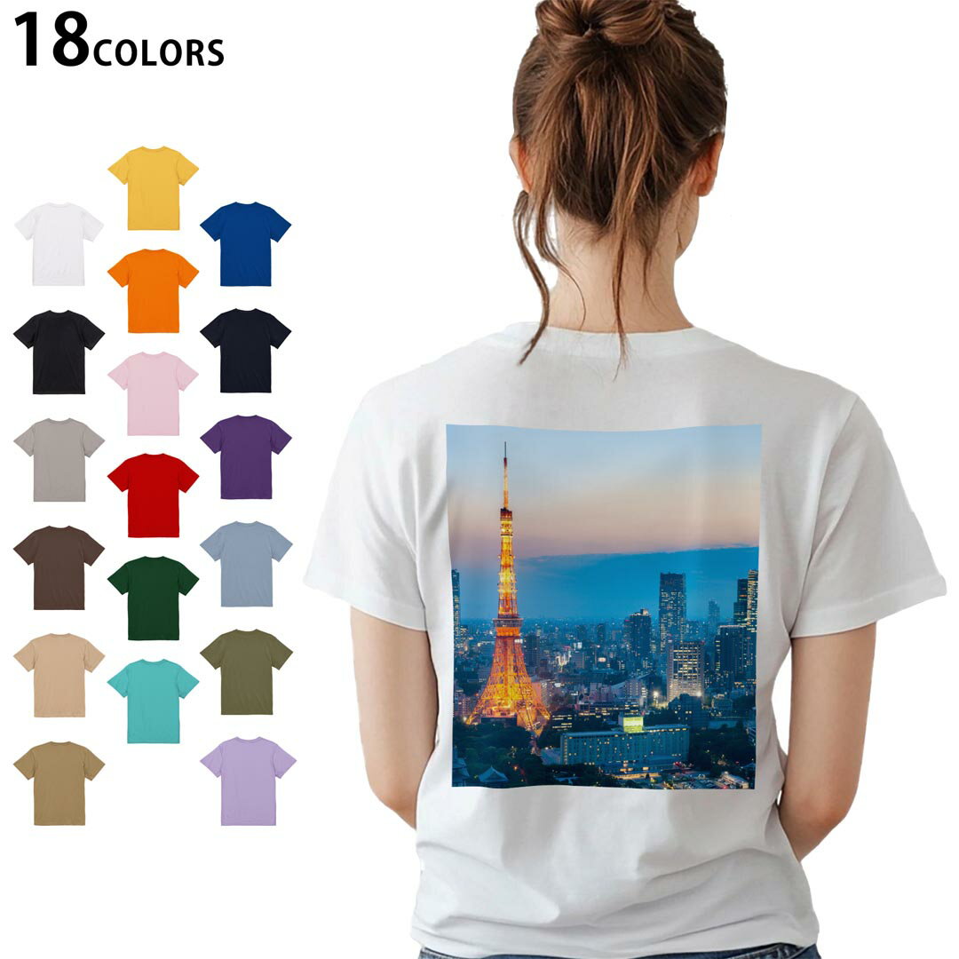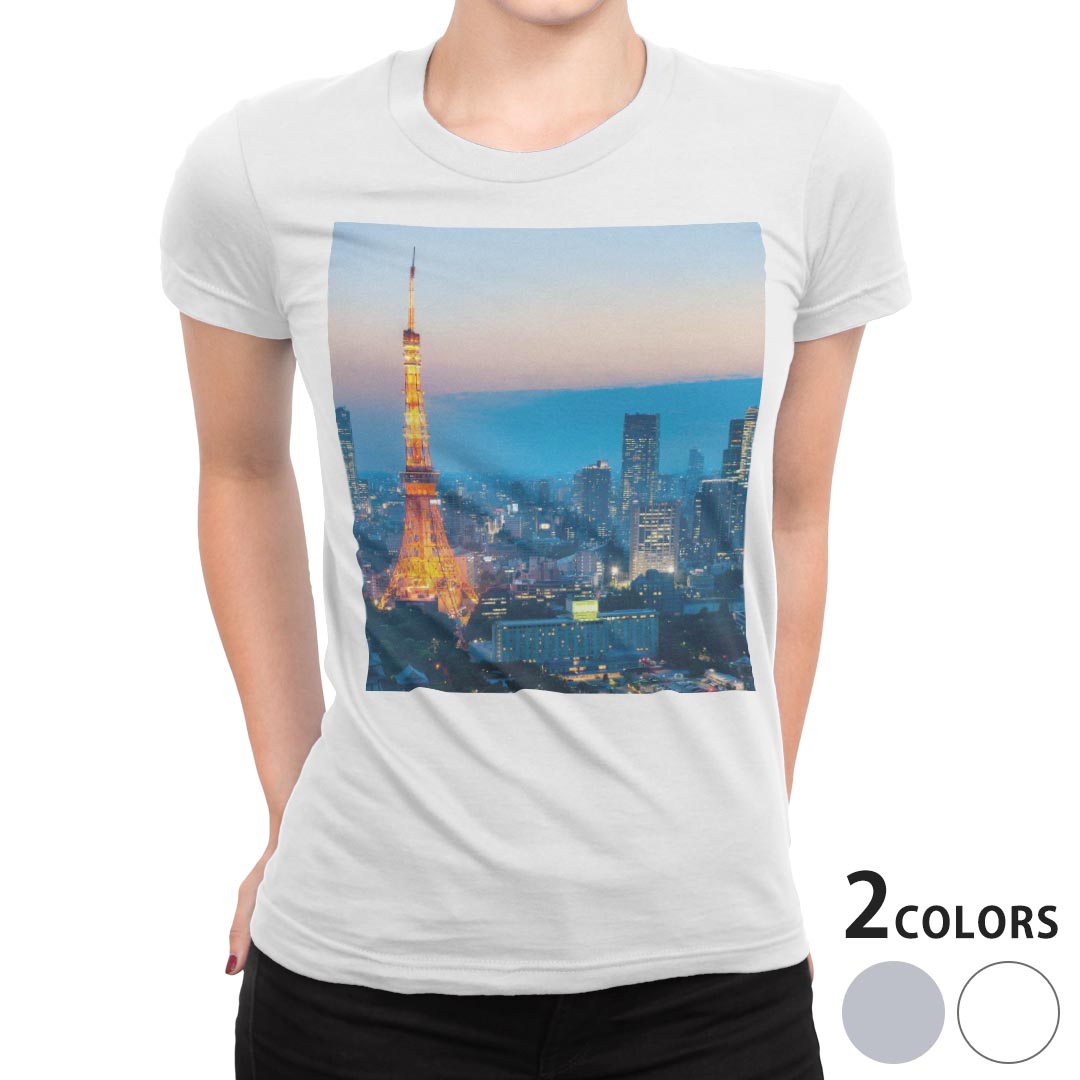 選べる18カラー Tシャツ レディース 半袖 ホワイト グレー デザイン M L Tシャツ ティーシャツ T shirt 014734 東京タワー 写真