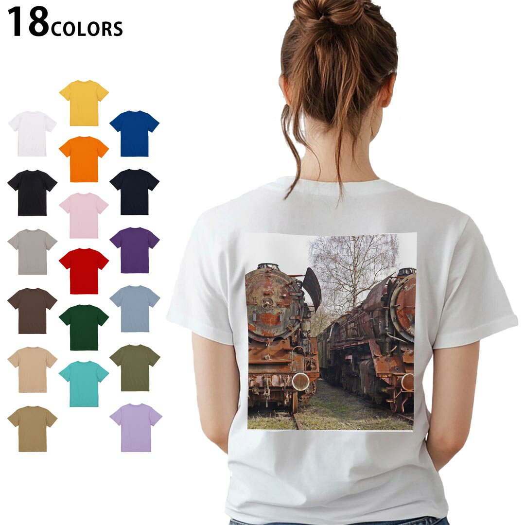 選べる18カラー Tシャツ レディース 半袖 ホワイト グレー デザイン M L Tシャツ ティーシャツ T shirt 023532 機関車 電車 写真