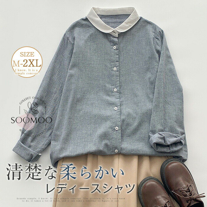 送料無料 シャツ レディース 長袖シャツ 配色 トップス シャツブラウス 羽織り スタンダードカラー コットン 綿 切替 前開き 薄手 アウター スーツインナー 春 秋 ゆったり 柔らか 仕事 通勤 大人 着?せ カジュアル グレー 灰色