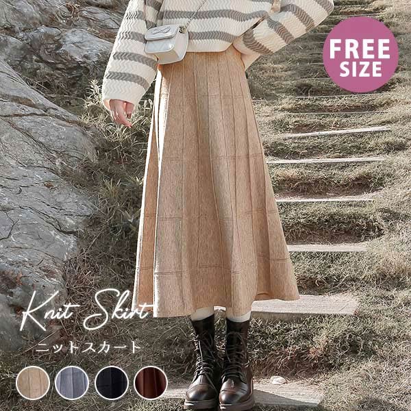 ニットスカート 秋冬 大人女子 レディース あったか ひざ下丈スカート ミモレ丈 プリーツ スウェートチェック柄 格子 ブラック 黒 グレー 灰色 ベージュ ブラウン dd161x1x1d7