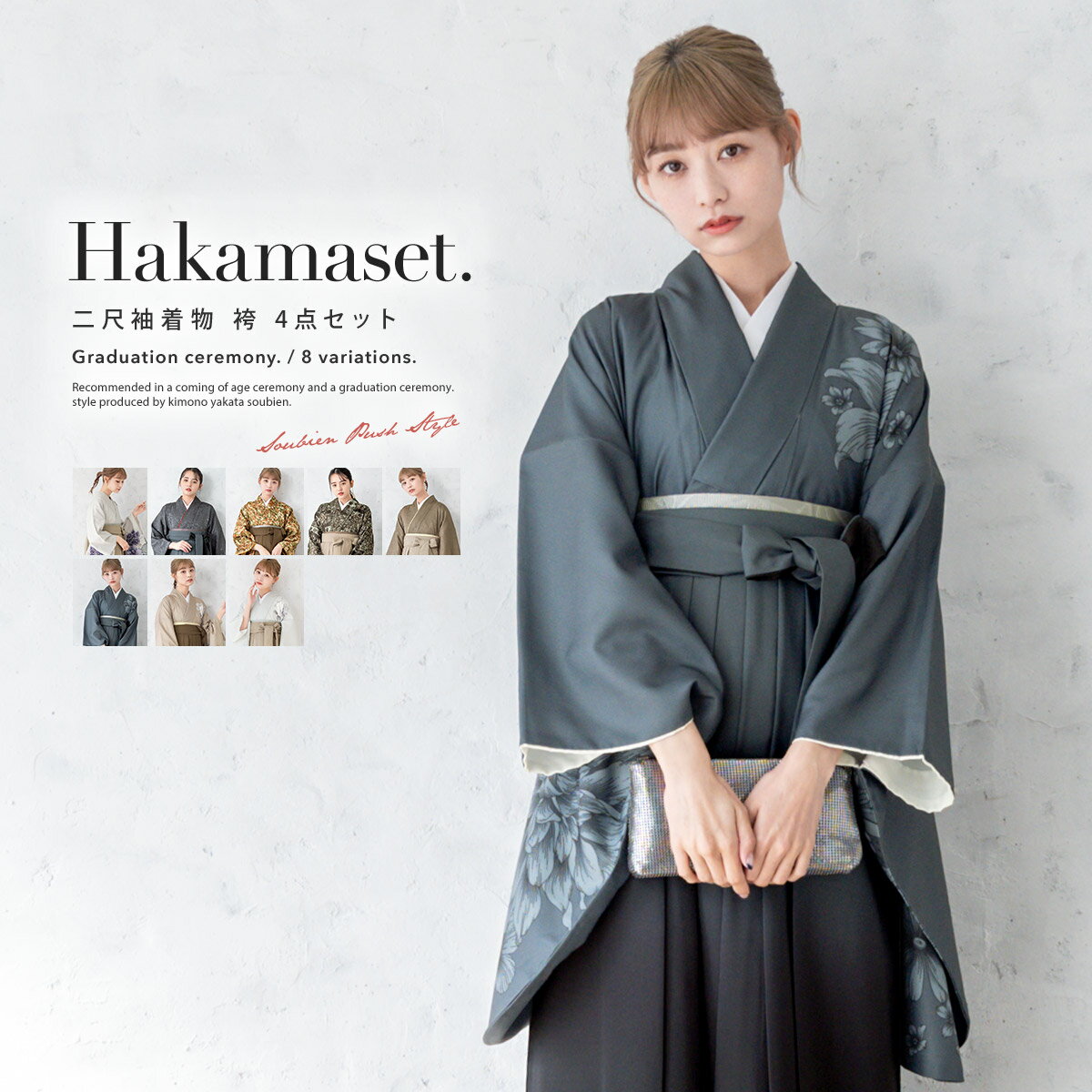 イーグルス感謝祭☆最大1000円クーポン配布中☆袴セット 卒業式 大学生 レディース 女性 女の子 小学生 ジュニア 袴 4点セット 灰色 ベージュ 茶 黒 二尺袖 着物 襦袢 帯 着物セット 子供 中学生 購入 販売 創美苑 送料無料 身長138から175cm対応