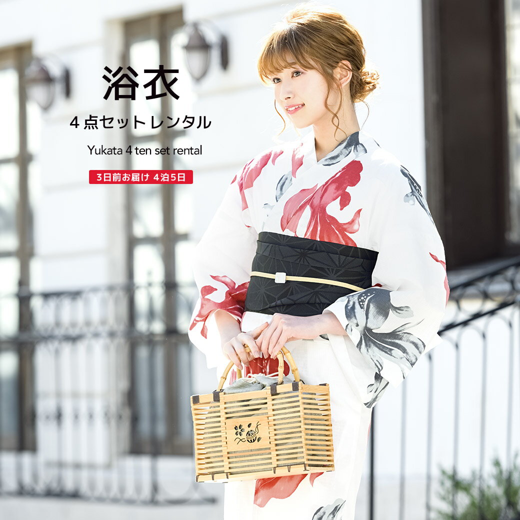 【半額】先着50名限定クーポンで50%OFF☆イーグルス感謝祭特別クーポン【レンタル】浴衣 セット レディース レトロ 浴衣セット 大人 4点セット 白 ホワイト 赤 レッド グレー 灰色 金魚 モダン 綿 半幅帯 夏 クール ゆかた 女性 和服 往復送料無料