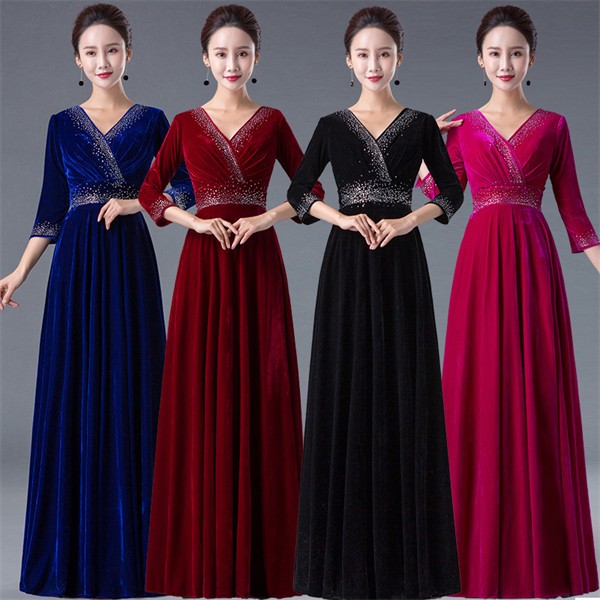 パーティードレス レディース パーティードレス ロング丈 ファスナー付き キラキラ スパンコール 合唱 衣装 コーラス 衣装 ワンピース ロングドレス フォーマル 二次会 謝恩会 発表会 舞踏会 演奏会 披露宴ドレス全6色