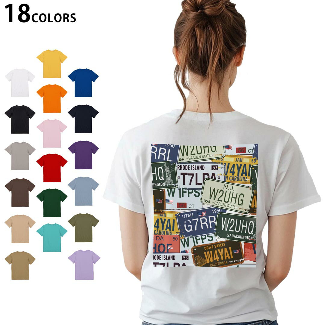 選べる18カラー Tシャツ レディース 半袖 ホワイト グレー デザイン M L Tシャツ ティーシャツ T shirt 000171 プレート 英字 看板