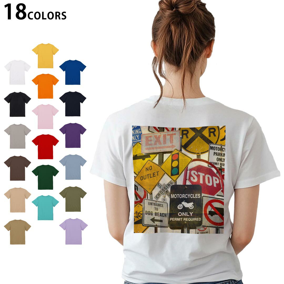 選べる18カラー Tシャツ レディース 半袖 ホワイト グレー デザイン M L Tシャツ ティーシャツ T shirt 000826 標識 看板