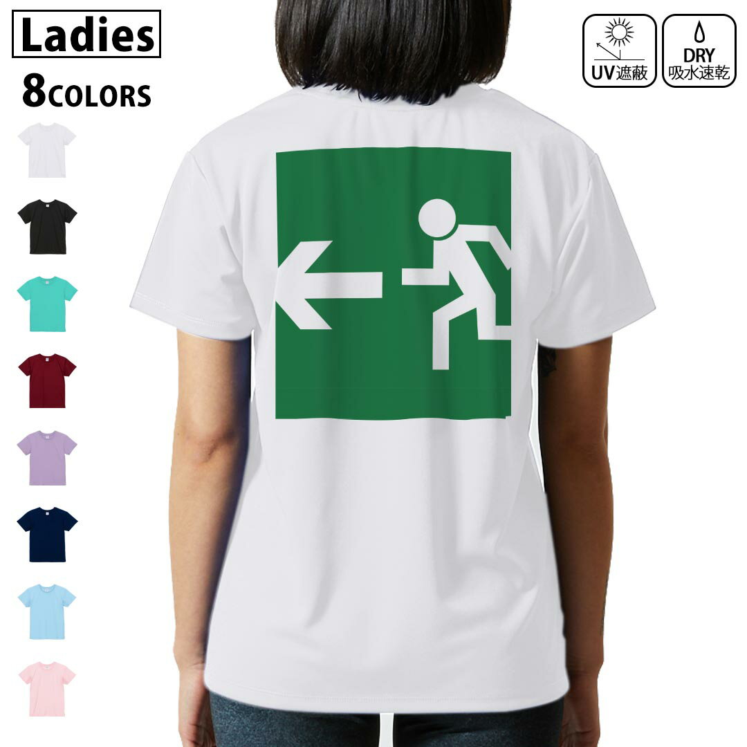 ドライ Tシャツ バックプリント 選べる8カラー tシャツ レディース 半袖 速乾 紫外線遮蔽 UV デザイン 2サイズ Tシャツ ティーシャツ T shirt 000211 出口 看板 緑