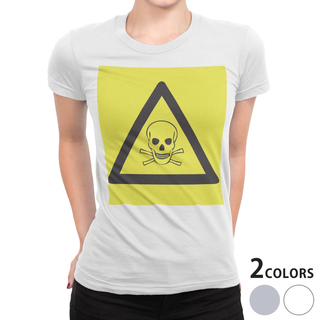 tシャツ レディース 半袖 白地 デザイン M L 白 ホワイト グレー Tシャツ ティーシャツ T shirt 000041 ユニーク 危険 看板 ガイコツ
