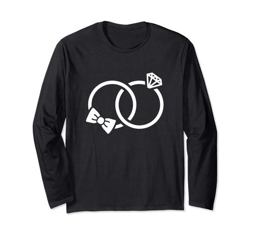 結婚式、結婚、家族との愛とロマンを祝うすべてのカップルのための蝶ネクタイ付きの結婚指輪と式とパーティーで夫または妻と将来を期待して 長袖tシャツ