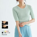 MAX1,000円OFFクーポン★選べるネック綿混半袖リブニット セーター リブニット サマーニット ニット レディース Vネック ボートネック 半袖 オフィス 春 春服 ピエロ 【Pierrot】
