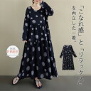 ワンピース ロング 長袖 レディース ドット柄 水玉柄 ロング ワンピース 綿混 カジュアル プルオーバー 春 秋 新作 体型カバー ゆったり 可愛い 着痩せ 大きいサイズ カジュアル レトロ 通勤 お洒落 森ガール ギャザー ワンピ 20代 30代 40代 50代 送料無料