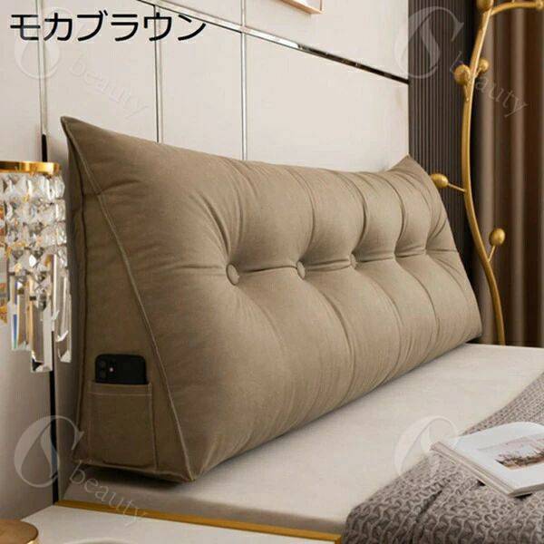 背もたれ クッション ベッド 三角 背もたれクッション ソファー ヘッドボードのクッション ベッドサイド ポケット付き 洗える ロング ふわふわ
