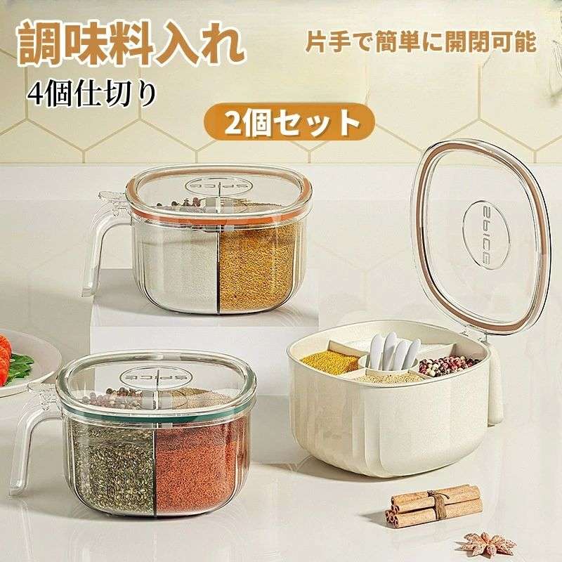 調味 調味料缶 調味料棚 湿気防止 調味料ポット 取っ手付き 分格收納 仕切り 蓋あり スプーン付き 調味料ケース 透明 調味料入れ