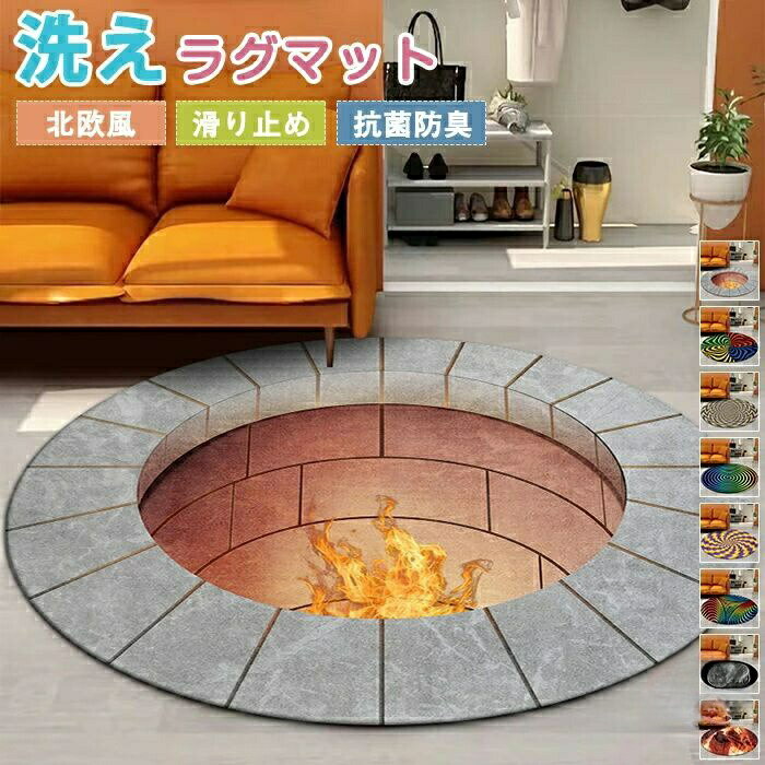 ラグマット ラグ 洗える ラグカーペット 3D 円形 トリックアート だまし絵 敷物 絨毯 立体 渦巻き 渦巻 錯覚 滑り止めマット フロアマット 畳 デスク イ なめらか ズレない 足元マット