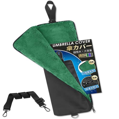 [SLEEPSINERO] 傘カバー 傘ケース 折りたたみ傘用 超吸水タオル生地 革新40cm長さ・3サイズ選べる 防水 肩掛け 傘袋 折畳傘ケース 大きい 軽量 携帯便利 梅雨対策 濡れない 傘入れ 折り畳み傘カバー 傘収納ケース 車用 ロング (グリーン, L)