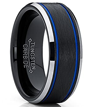 【中古】【輸入品・未使用】Metal Masters Co. メンズ タングステンカーバイド ブラックとブルー テクスチャ加工 結婚指輪 快適フィット 8mm
