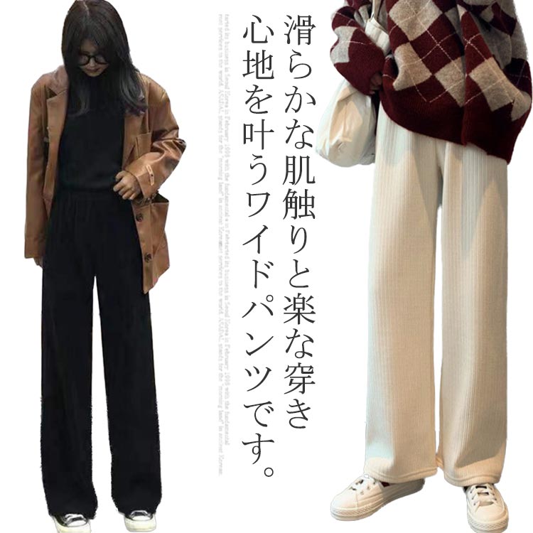 ワイドパンツ レディース ボトムス 長ズボン ロングパンツ 保温 パンツ ハイウエスト ストレート シェニール 秋 冬 通学着 普段着 お出かけ 姉妹 ゆったり ファッション シンプル
