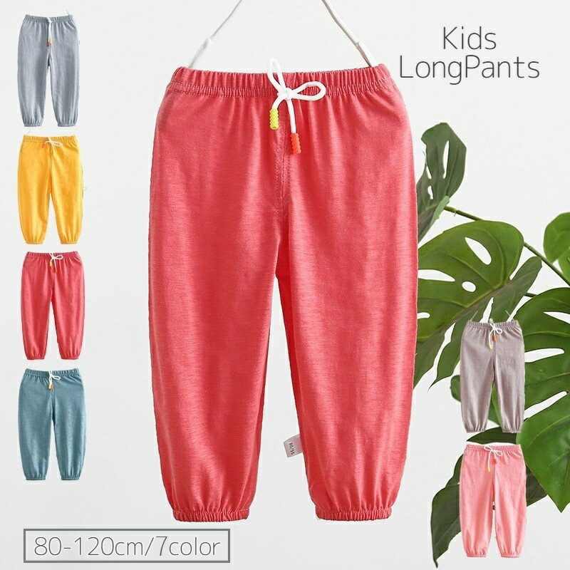 送料無料 ロングパンツ キッズ 子供服 女の子 男の子 ボトムス 薄手 無地 シンプル 裾ゴム 裾絞り ウエストゴム 紐 イージーパンツ 秋 春 夏 動きやすい カジュアル おしゃれ 長ズボン 通園 通学 小学生 着替え 普段着 ガールズ 女児 ボーイズ 男児 73 80 90 100 110 120 ル