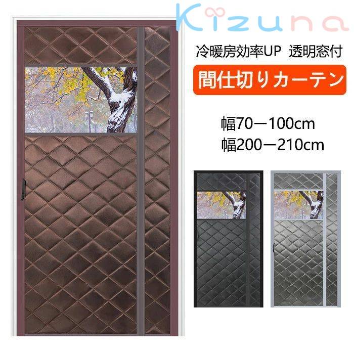 のれん 玄関 ドア用 マグネット式 暖簾 間仕切りカーテン 冷気遮断 断熱カーテン 透明窓 自動で閉まる ドア 防寒カーテン 間仕切り カーテン 簡単取付 冷暖房効率 中綿入り 防風 防水