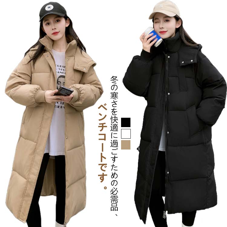 ダウンコート レディース ベンチコート フード付き 中綿ジャケット 超ロング丈 膝下 中綿ダウン 中綿入り ロングコート 中綿コート アウター 冬物 着痩せ 可愛い 防寒着 防寒 秋冬 ボリューム 厚手 軽量 通勤 通学 バイク アウトドア