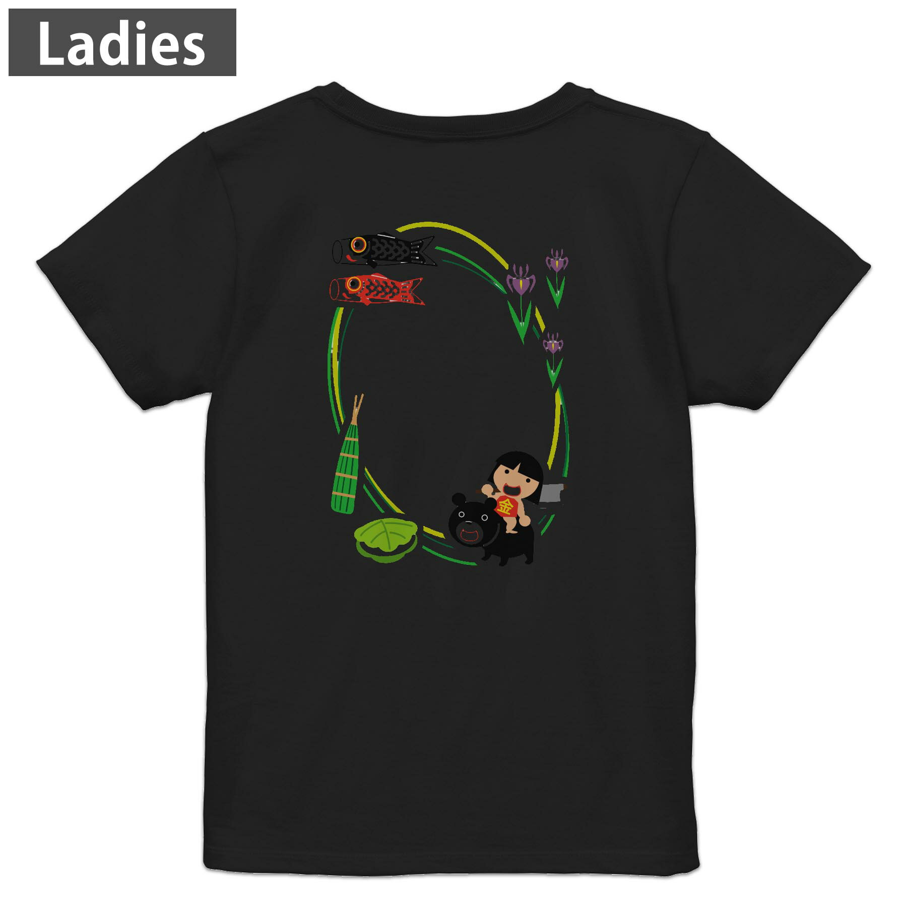 Tシャツ レディース バックプリント 半袖 ブラック 黒 デザイン M L tシャツ ティーシャツ T shirt 015299 こどもの日 鯉のぼり 兜 熊